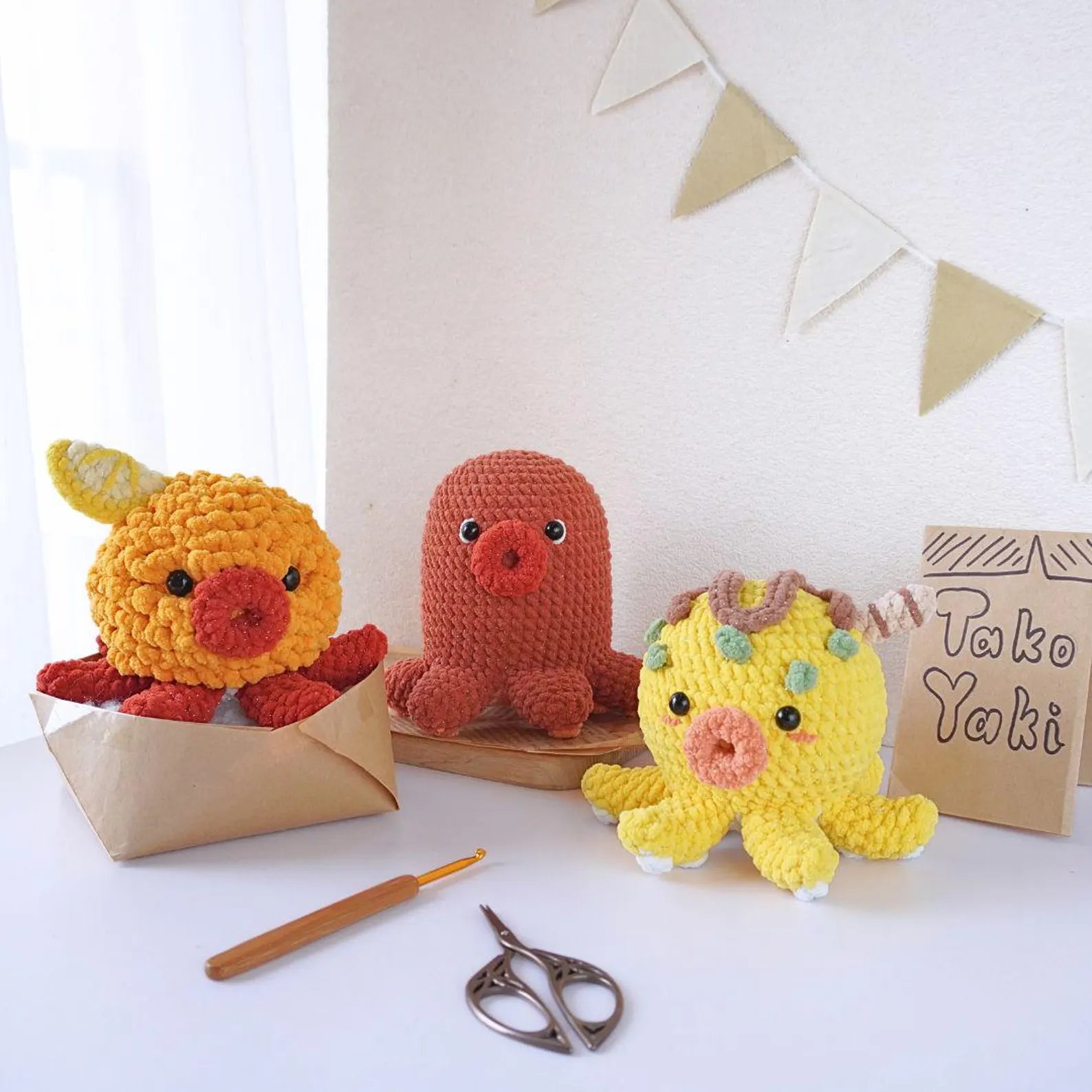 Tako Crochet Patterns Bundle | Fried Squid Takoyaki Pattern, Hot Dog Octopus Pattern, Takoyaki Pattern, Amigurumi Crochet Patterns
